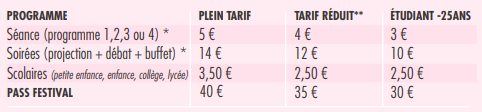 ** Tarif Réduit : adhérents des centres sociaux, MJC de Vaulx-en-Velin, EPI, demandeurs d’emploi, moins de 14 ans, étudiants de + de 25 ans, retraités